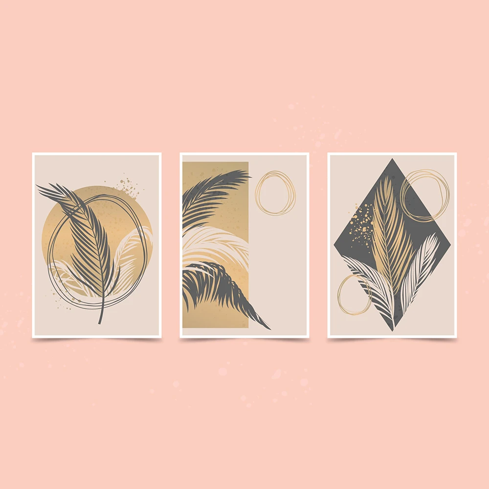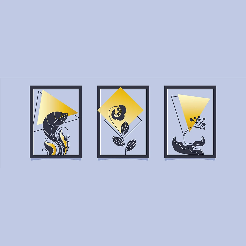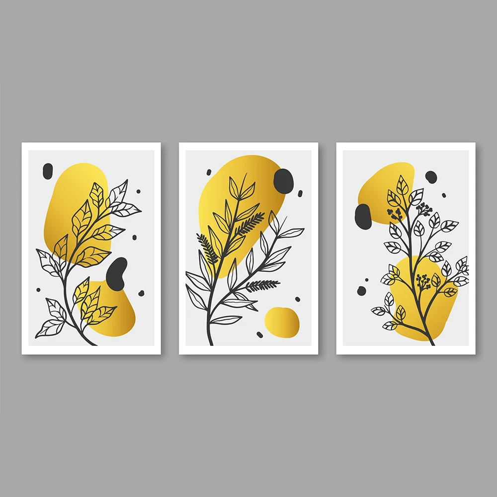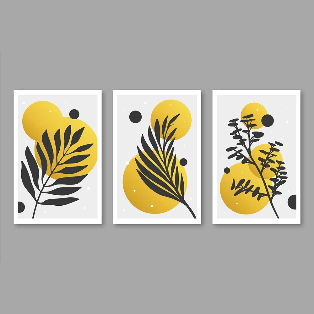 طقم لوحات فنية بسيطة وعصرية من قطعتين، تتميز بتصميم تجريدي لخطوط أوراق الشجر السوداء. تطفو هذه الأوراق على خلفية من أشكال عضوية بألوان ترابية هادئة مثل الأصفر الخردلي والأخضر الزيتوني. التصميم يجمع بين البساطة والجمال الطبيعي، مما يجعله إضافة مثالية لإضفاء لمسة من الهدوء والأناقة على أي مساحة داخلية، خاصةً الأماكن التي تعتمد على الطابع الاسكندنافي أو البوهيمي.