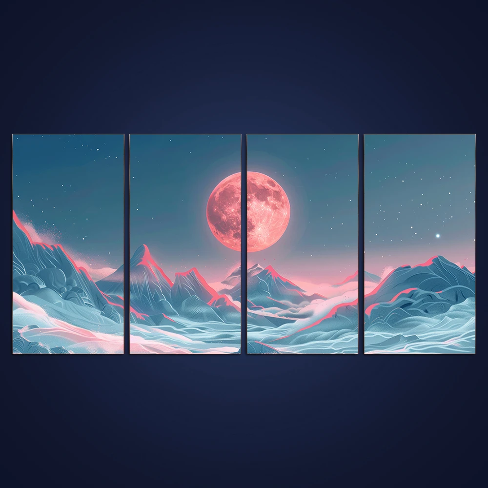 قمر الدم فوق جبال الفجر الباردة (لوحة رباعية)