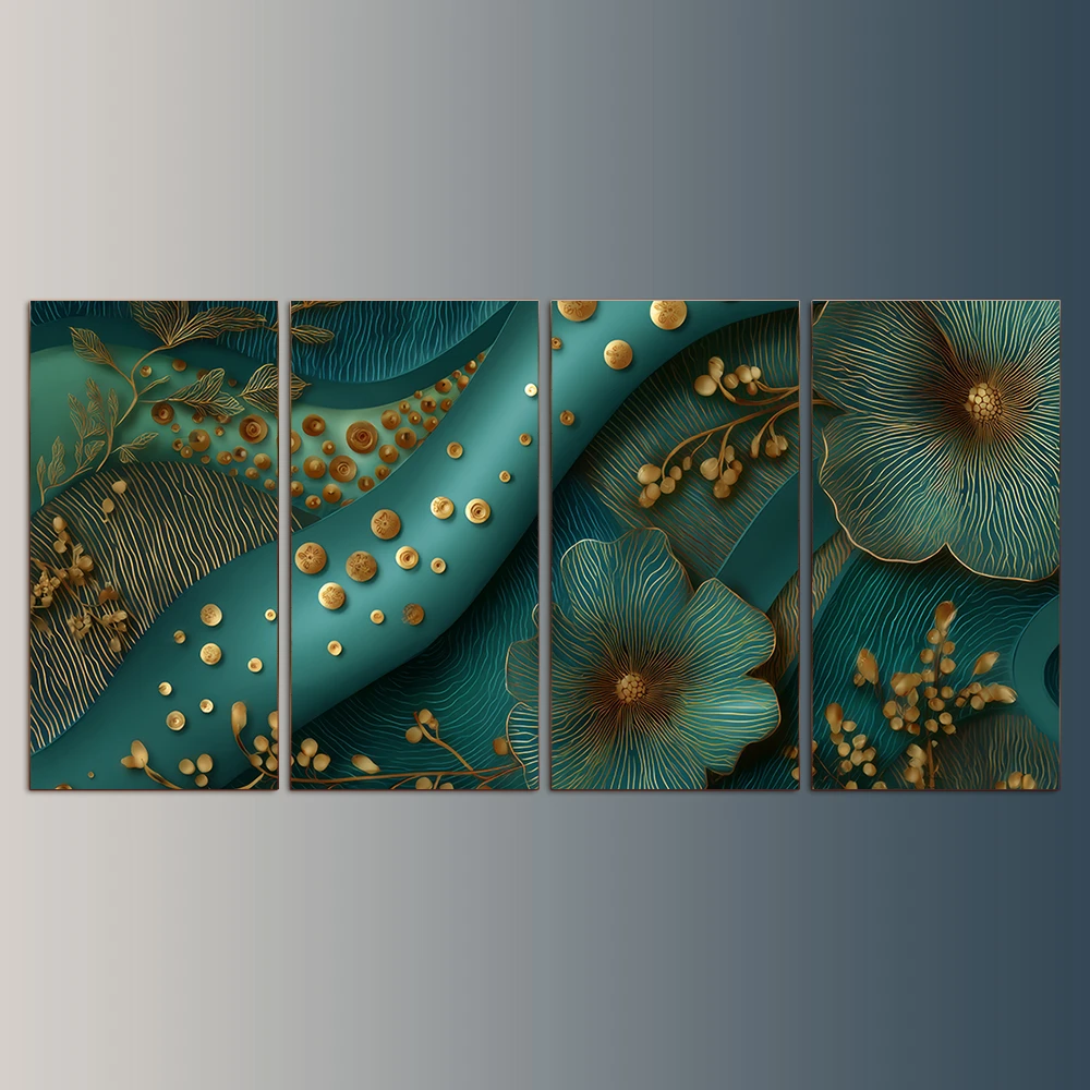 الإزهار الذهبي: فن التجريد الزخرفي الفيروزي (لوحة مقسمة)